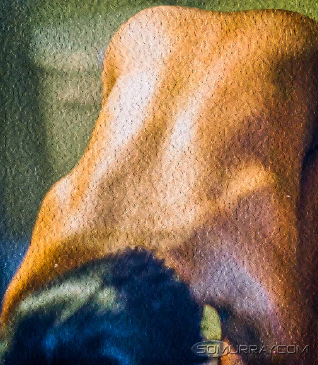 The model in this photo has a background in martial arts and so I asked her to display some of her skills. Shooting at 1/200 of a sec (shutter speed), I was able to freeze her fluttering shawl and the encroaching waves. Her feet generated a slight blur that reflected the quickness of her feet.